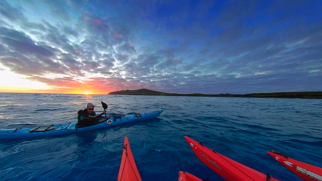 Para este amanecer, comenzaremos antes de la salida del sol desde la pequeña bahía de Hanga Tu’u Hata. Nuestro recorrido en kayak nos llevará hasta posicionarnos detrás del majestuoso Ahu Tongariki, desde donde presenciarás los primeros rayos de luz y la salida del sol sobre el horizonte del mar.